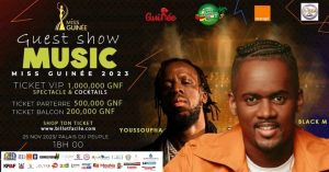 La finale de Miss Guinée 2023 promet d’être un mélange captivant de beauté, de musique, de culture et de divertissement. Les candidates en lice pour le titre de Miss Guinée auront l’opportunité de briller sous les projecteurs, et le public pourra apprécier une soirée exceptionnelle grâce à la présence de Black M, Youssoupha et d’autres artistes talentueux.