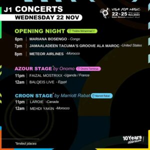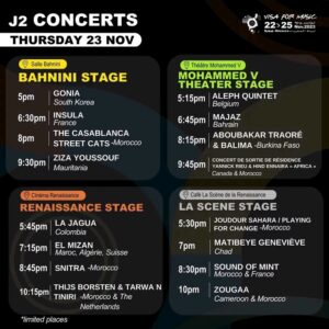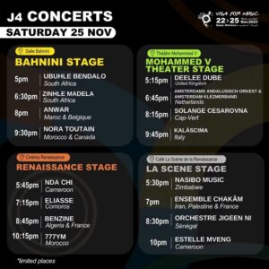 Le festival offrira une scène à de nombreux talents émergents et confirmés venant des quatre coins du continent africain et du Moyen-Orient. Concerts, showcases et rencontres professionnelles rythmeront ces quatre jours, favorisant les échanges culturels et artistiques.