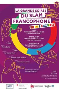 La scène slam francophone va vibrer au Maroc avec la tenue de la Grande Soirée du Slam Francophone, un événement incontournable organisé dans le cadre des festivités du mois de Mars dédié à la francophonie. Prévu pour le mercredi 27 mars à Rabat, le vendredi 29 mars à Casablanca, et le samedi 30 mars à Marrakech à l’Institut Français, cet événement promet une célébration haute en couleur de la diversité linguistique et culturelle de la francophonie.