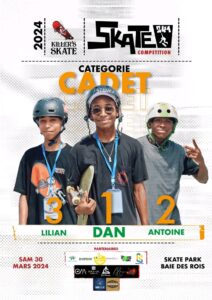 Chez les cadets, c’est Dan qui s’est hissé au sommet du podium, suivi par Antoine à la deuxième place et Lilian à la troisième place. Leur énergie et leur passion pour le skateboard ont été évidentes tout au long de la compétition.