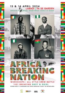 Le Festival Africa Breaking Nation est de retour, et cette fois-ci, les amateurs de danse et de culture africaine sont conviés à cet événement incontournable. Du 11 au 14 avril 2024, les jardins de La, Fe Se au Ghana seront le théâtre de cette célébration dynamique, qui rassemblera huit pays africains passionnés par l’art du Breaking. Il s’agit entre autres du Ghana, la Côte d’Ivoire, la Guinée, le Togo, le Bénin, le Nigeria, le Niger et le Burkina Faso.