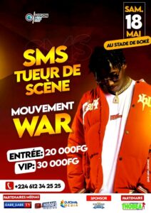 Le 18 mai prochain, le stade du 01 mai de Boké va vibrer au rythme d’un événement musical d’envergure, organisé par la structure Vision Pub Guinée. Ce concert géant mettra en avant plusieurs jeunes talents, dont le célèbre artiste urbain SMS, porteur du mouvement War.