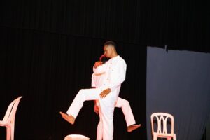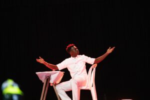 Vêtus de blanc, symbole de pureté et d’unité, EOB & Dieng ont offert un spectacle poétique saisissant intitulé « Les jeux de regards« . Pendant plus d’une heure, ils ont enchanté l’auditoire avec leurs vers profonds et percutants, accompagnés d’une musique envoûtante. Chaque mot était chargé d’émotion, chaque rythme transportait l’âme, créant ainsi une ambiance électrique et immersive.
