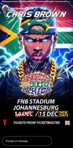 Pour répondre à la forte demande et ne pas décevoir ceux qui n’ont pas pu obtenir de tickets, une deuxième date a été ajoutée. Chris Brown se produira également le 15 décembre, toujours au FNB Stadium, offrant ainsi une nouvelle chance à ses fans de vivre une prestation exceptionnelle de Breezy.