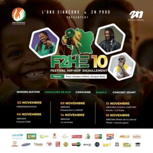 La 10e édition du Festival Hip-hop Enjaillement, portée par la rappeuse ivoirienne Nash, se tiendra du 2 au 16 novembre 2024. En partenariat avec l’ONG Siançons et 2 N Prod, cette édition a pour thème « Pour chaque enfant, chaque droit« . Ce thème met l’accent sur les droits des enfants et vise à sensibiliser le public à cette cause essentielle.