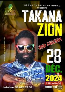 Le reggaeman guinéen Takana Zion, surnommé Mangana, sera en concert exceptionnel à Dakar le 28 décembre 2024. L’événement se tiendra au prestigieux Grand Théâtre National Doudou Ndiaye Coumba Rose, une scène emblématique de la culture sénégalaise.