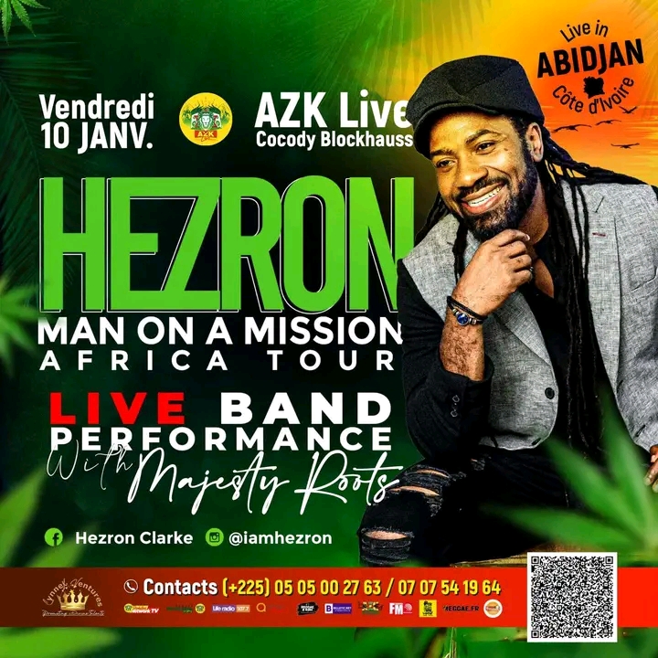 L’artiste jamaïcain Hezron, une figure incontournable du reggae et auteur du célèbre titre So in Love, sera en showcase ce vendredi 10 janvier 2025, à l’espace Azk Live, situé à Cocody.