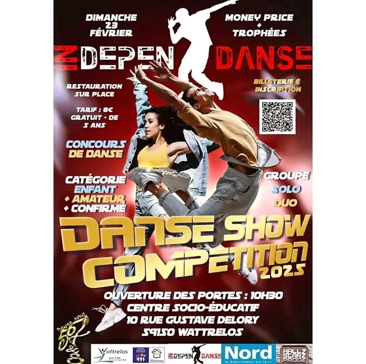 Le dimanche 24 février 2025, le Centre socio-éducatif situé au 10 Rue Gustave Delory, 59150 Wattrelos, accueillera une compétition exceptionnelle de breaking : la ‘Dance Show Compétition 2025’, organisée en collaboration avec Indépen’danse.