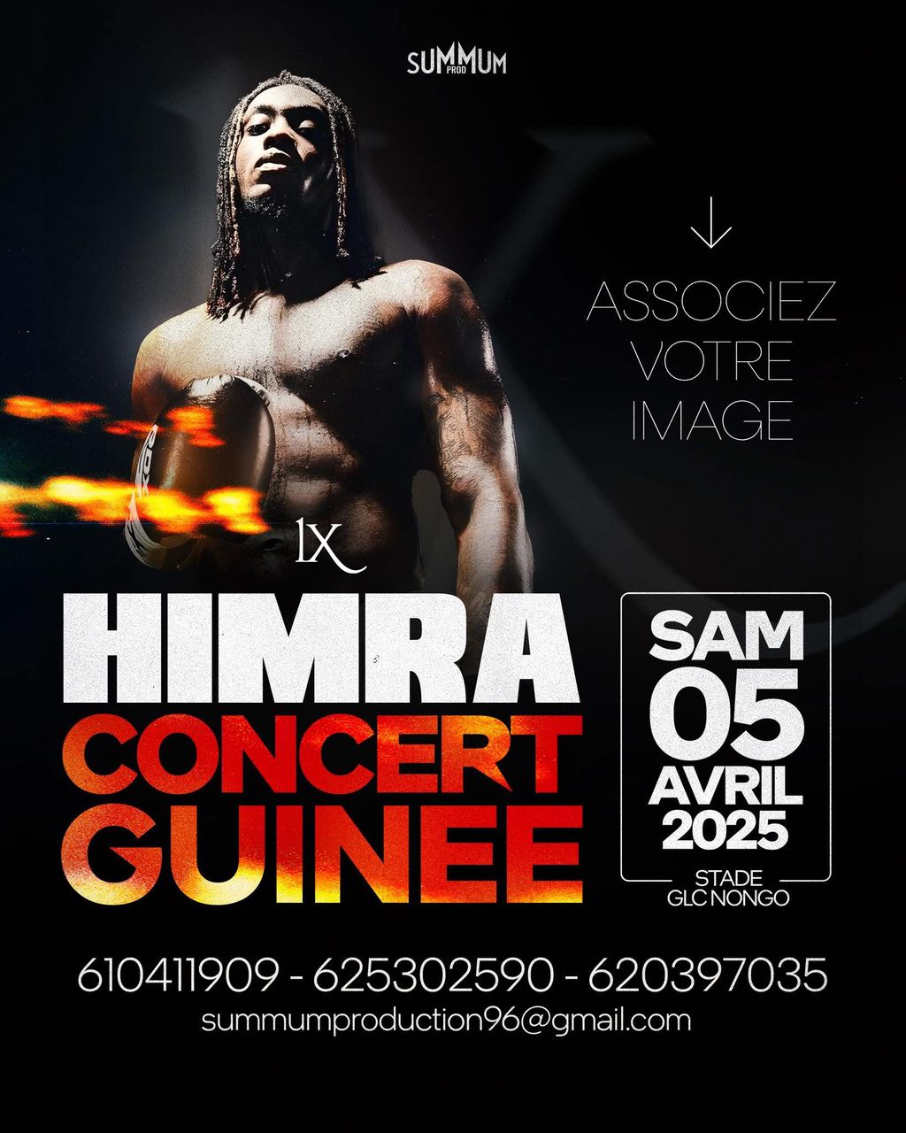 Comme nous l’avions annoncé dans un précédent article, le rappeur ivoirien Himra, en pleine ascension, donnera un concert à Conakry le 5 avril 2025. Alors que le lieu de l’événement restait incertain, la structure organisatrice Summum Prod a finalement tranché. Le concert se tiendra au Stade Général Lansana Conté de Nongo.