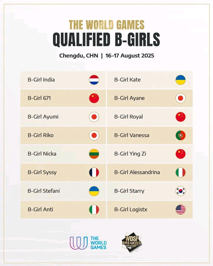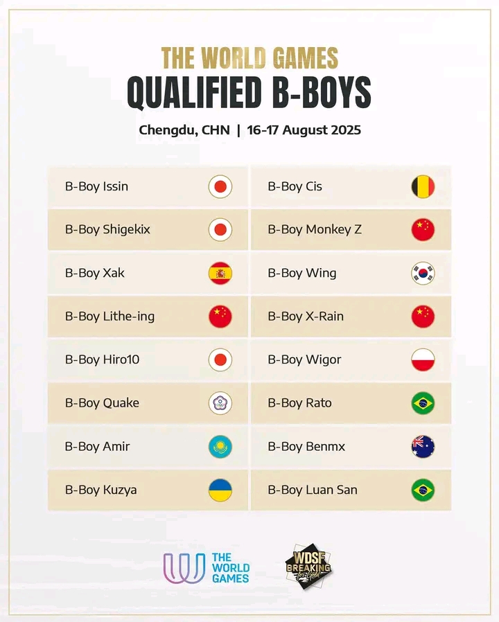 En amont des prestigieux The World Games 2025 (Jeux Mondiaux), qui se tiendront à Chengdu, en Chine, du 14 au 17 août, la discipline du breaking ne reste pas en marge. Les épreuves de cette danse urbaine spectaculaire auront lieu les 16 et 17 août, et les organisateurs ne cessent de faire monter l’excitation autour de l’événement.