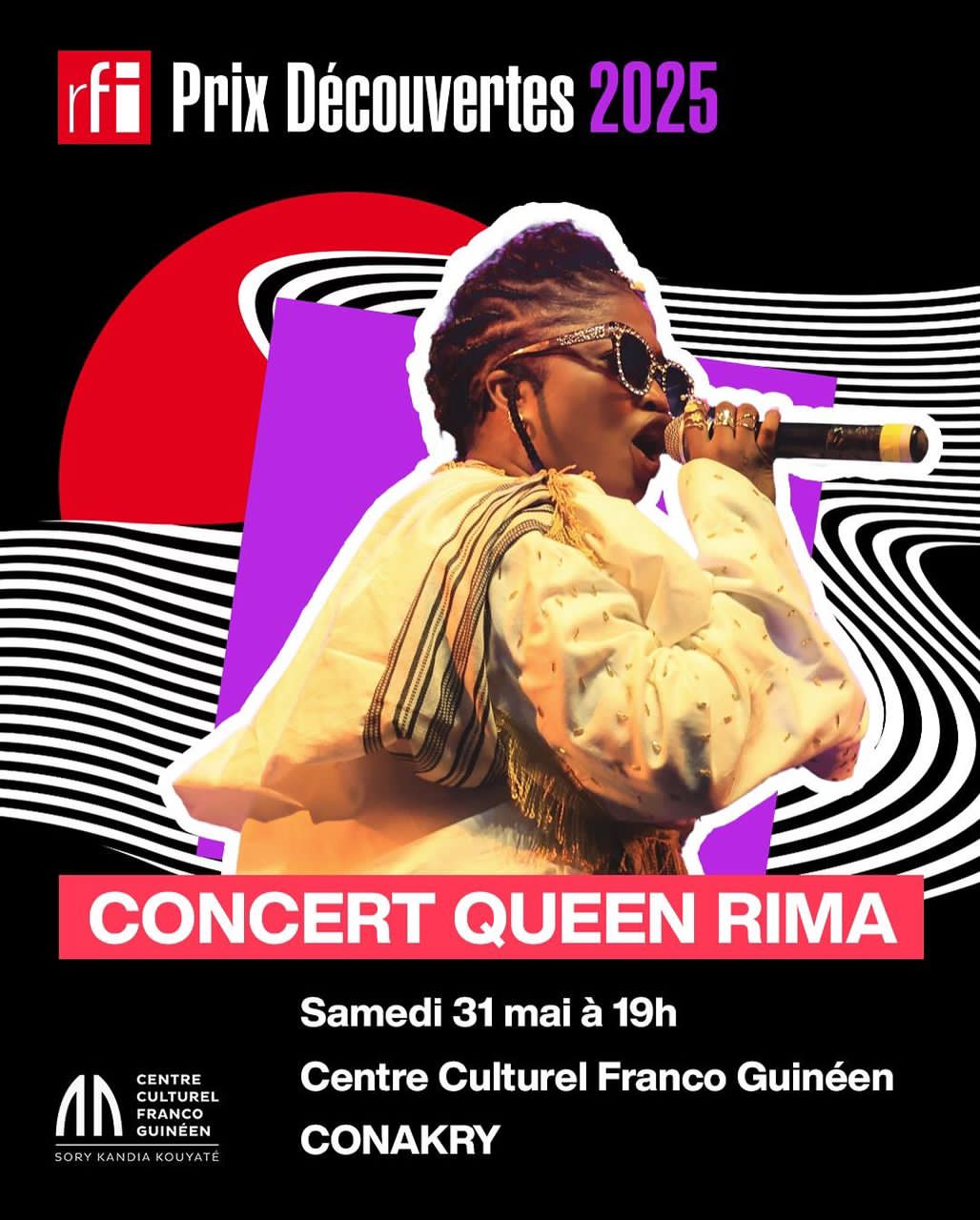 Lauréate du prestigieux Prix Découvertes RFI 2025, la chanteuse guinéenne, Queen Rima s’apprête à marquer un nouveau tournant dans sa carrière. Elle recevra officiellement son prix d’une valeur de 10 000 euros le samedi 31 mai, lors d’un concert live exceptionnel au Centre Culturel Franco-Guinéen (CCFG).