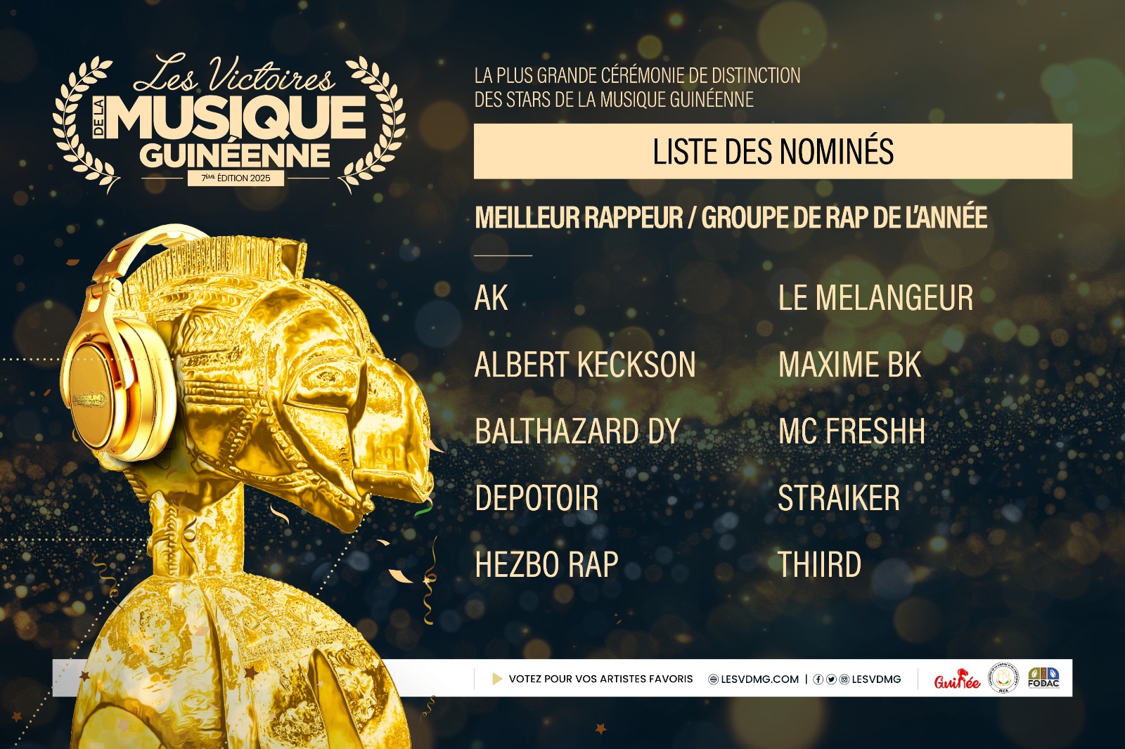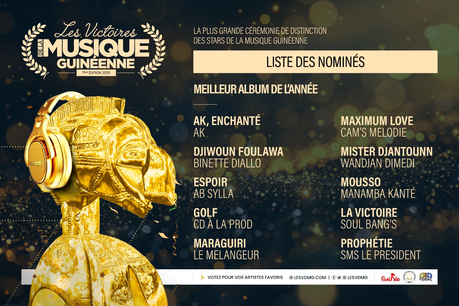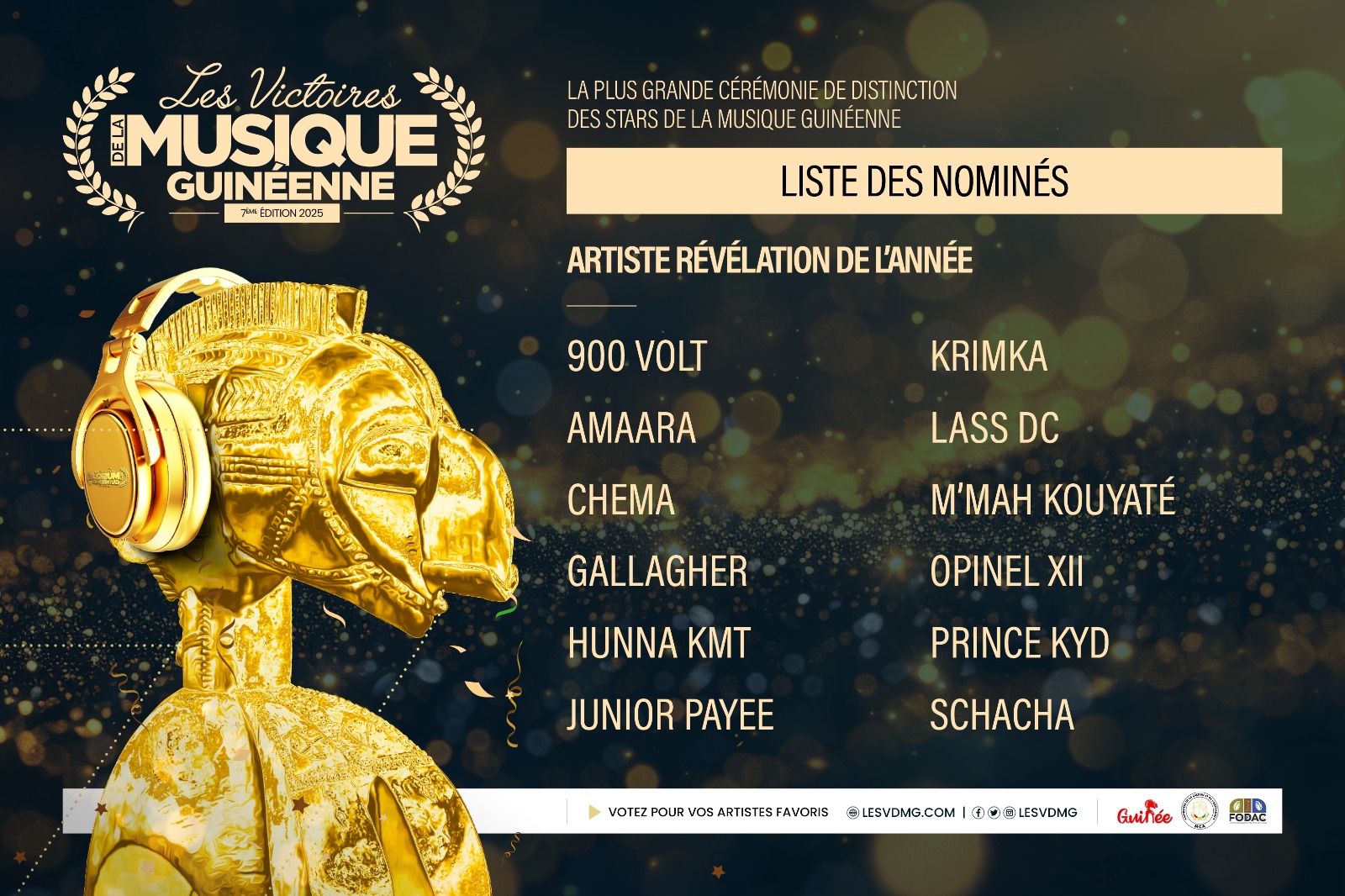 L’agence de communication Elitecom a dévoilé la liste officielle des nommés pour la 7ᵉ édition des Victoires de la Musique Guinéenne (VDMG), l’évènement qui célèbre les meilleures voix et les talents montants de la scène musicale guinéenne.