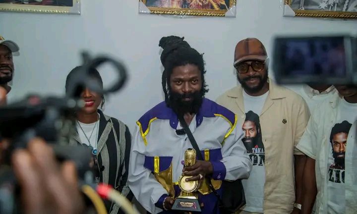 Sacré Meilleur Artiste Africain Reggae, Ragga & Dancehall aux AFRIMA 2026, Takana Zion a officiellement reçu son trophée ce week-end à son domicile à Conakry. Une remise sobre mais symbolique, tenue en présence de plusieurs artistes, proches et fans venus partager ce moment fort.
